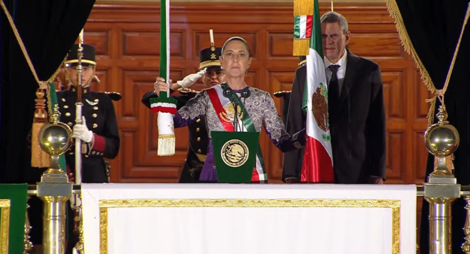 Una vez que Sheinbaum recibió la bandera entregada por la sargento, la mandataria se dirigió al pueblo de México.