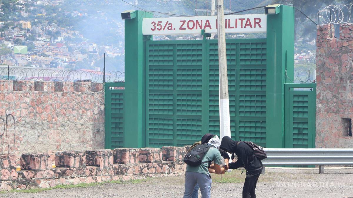 Presuntos normalistas de la Federación de Estudiantes Campesinos y Socialistas de México (FECSM) lanzaron petardos contra la 35 Zona Militar en Chilpancingo como parte de la conmemoración por los once años de la desaparición de los 43 estudiantes de Ayotzinapa.