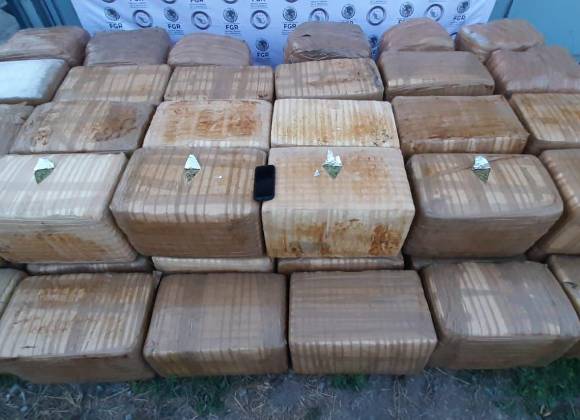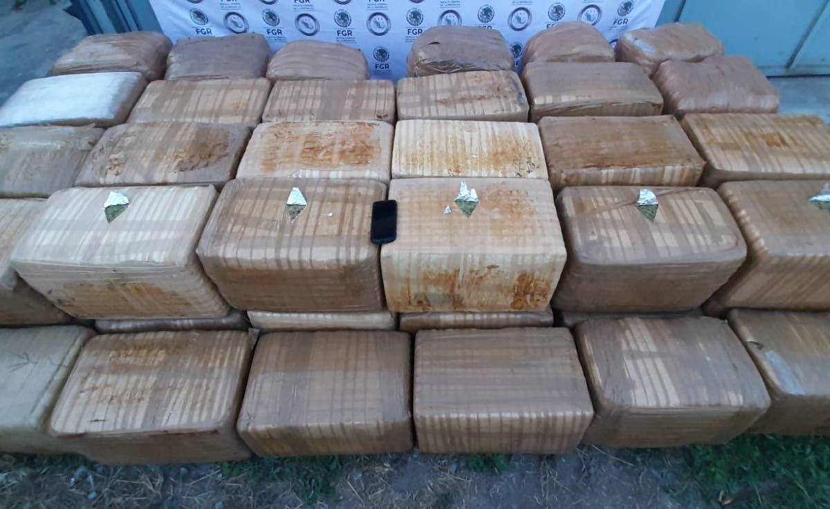 La FGR logró el aseguramiento de una tonelada 336 kilos 270 gramos de marihuana, tres armas largas, ocho armas cortas, 69 cartuchos, 17 cargadores, 10 partes de arma de fuego, 160 fundas para celulares.