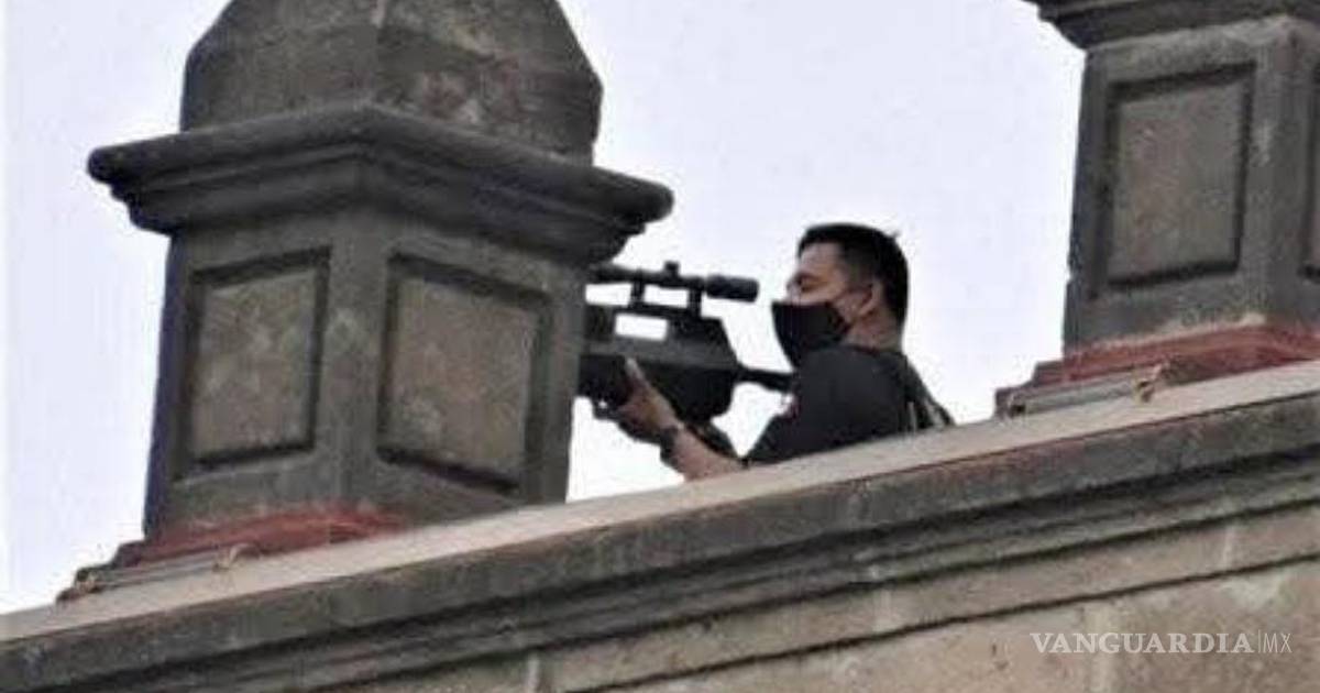 Usuarios en redes sociales tales como X, Facebook, Threads y TikTok divulgaron una imagen de una persona con un rifle apostado en Palacio Nacional
