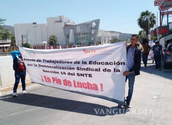 Al mediodía, un contingente de maestros de la Ceteg arribó a las oficinas distritales del INE, ubicadas en la colonia Salubridad, al sur de la capital del estado.