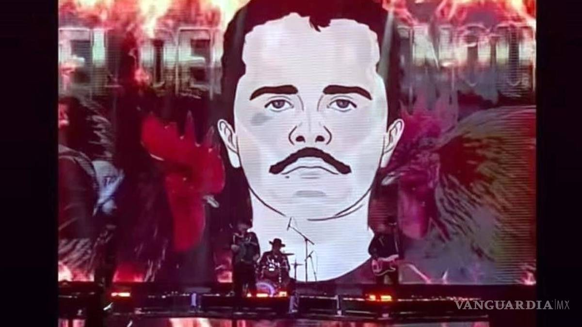 En el evento, se proyectaron imágenes del narcotraficante mientras la agrupación interpretaba el tema “El del Palenque”, una canción que hace referencia a los orígenes de ‘El Mencho’ en Michoacán y a su estructura criminal.