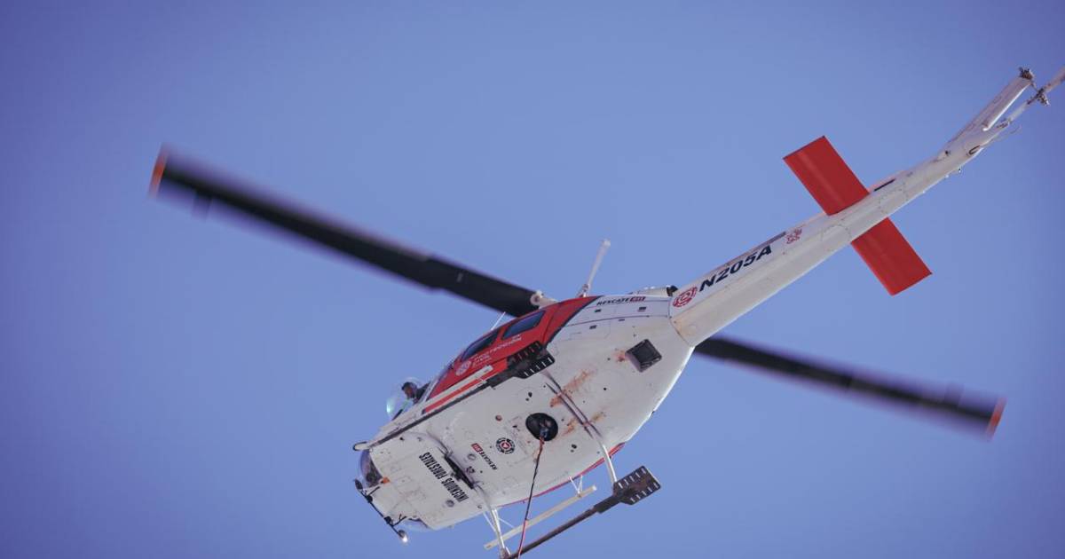 “Elementos de la Brigada Fénix de Protección Civil Nuevo León combaten vía aérea con el helicóptero de PCNL el incendio forestal en el Cerro de las Mitras en donde al arribar se realizó un sobrevuelo donde se logra ubicar el área afectada en la parte alta del cerro”