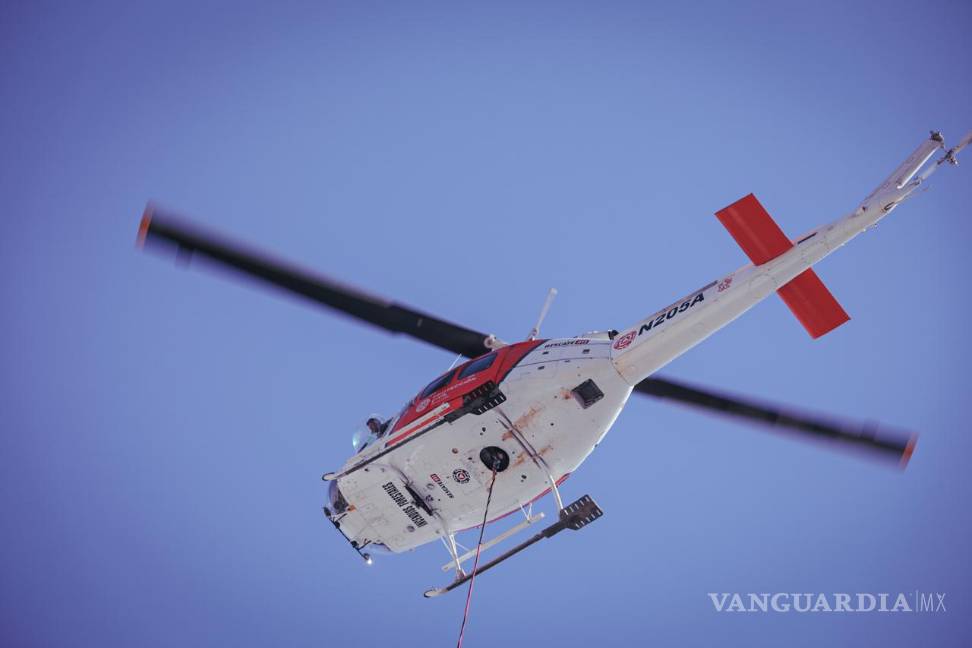 “El helicóptero de Protección Civil Nuevo León continúa realizando descargas en el área afectada”