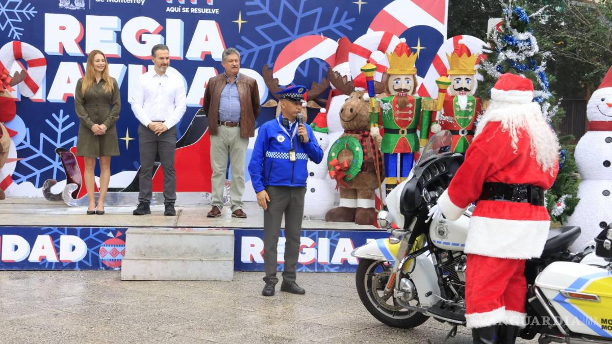 Monterrey, Nuevo León.- Como cada año, agentes de Tránsito del municipio de Monterrey se vistieron de Santa Claus para alegrar la temporada decembrina a la ciudadanía.