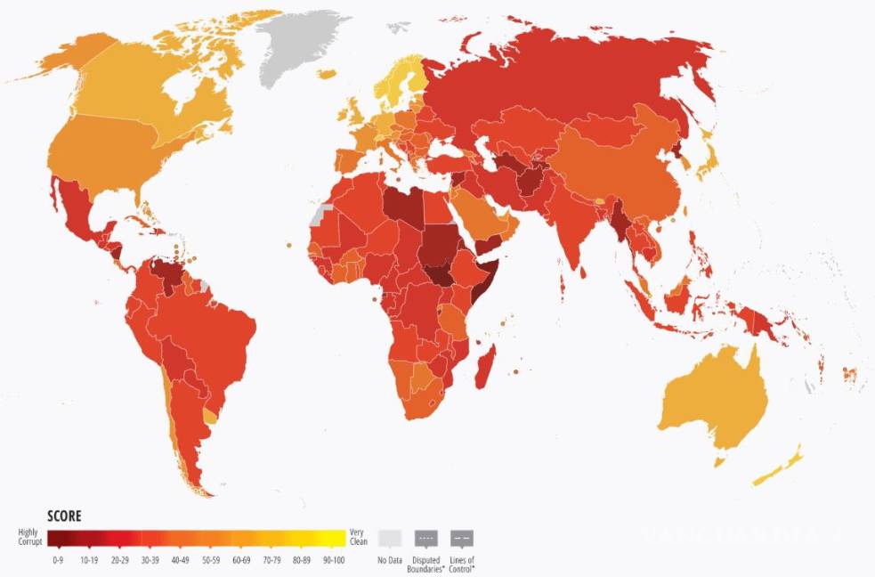“En 2025, México obtuvo una calificación de 27 puntos de 100 posibles. La escala del Índice de Percepción de la Corrupción va de cero -la peor evaluación para un país- a 100, la mejor calificación. Con 27 puntos, México se ubica en la posición 141 de 182 países evaluados”, informó Transparencia Mexicana.