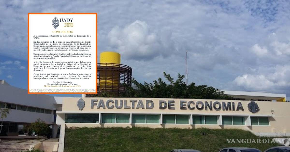 La Universidad Autónoma de Yucatán (UADY) lanzó un comunicado para deslindarse de los infortunios que rodean a los alumnos de la Facultad de Economía, en plenos preparativos de su fiesta de graduación