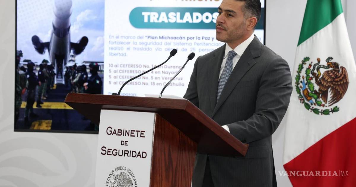 Para reducir riesgos de motines, reagrupamiento criminal e inestabilidad en penales estatales, 25 reos considerados de alta peligrosidad fueron trasladados de centros penitenciarios de Michoacán a prisiones federales, informó Omar García Harfuch, titular de la Secretaría de Seguridad y Protección Ciudadana (SSPC).