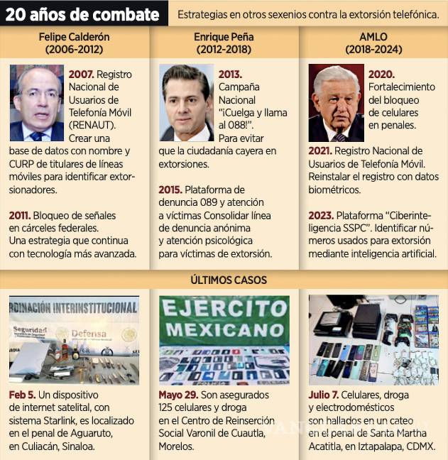 En cada administración se anuncian estrategias contra la extorsión telefónica; sin embargo, aún se siguen localizando celulares, drogas y hasta armas en los penales.