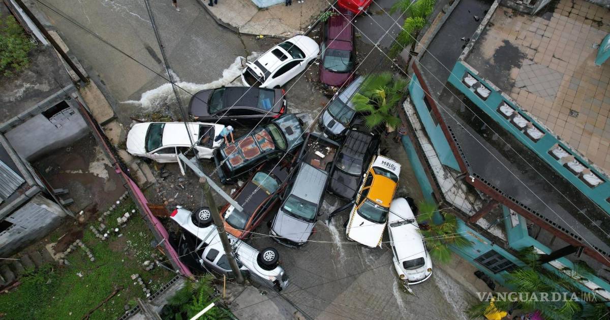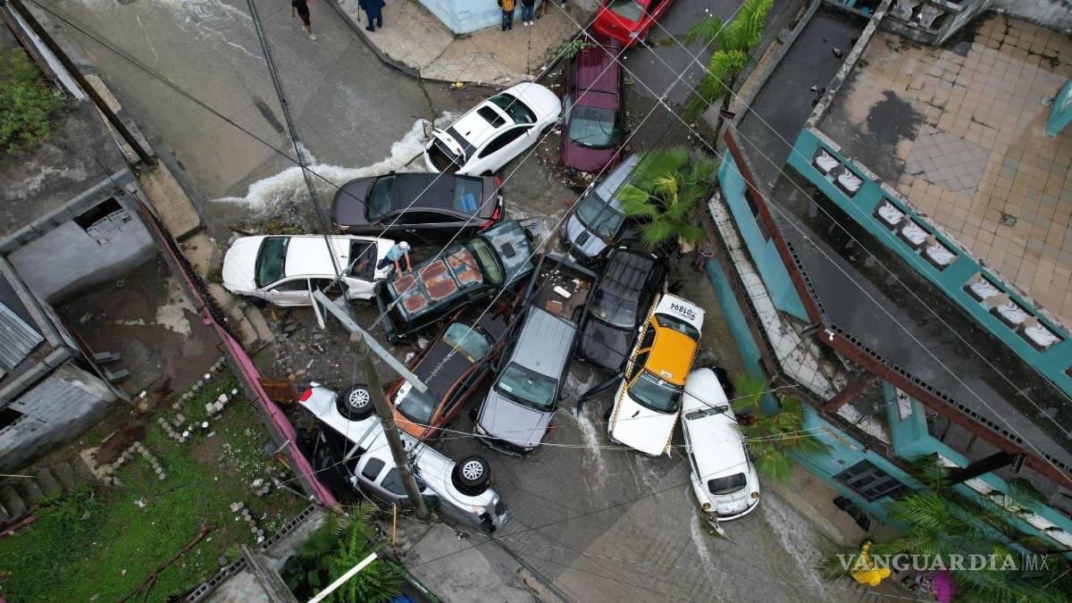Esto generó corrientes que arrastraron por lo menos 13 vehículos hasta hacerlos chocar entre sí en la confluencia de las calles José López Portillo y Benito Juárez, que efectivos militares acordonaron para evitar que curiosos se acercaran, pues había material peligroso como trozos de metal y cables eléctricos.
