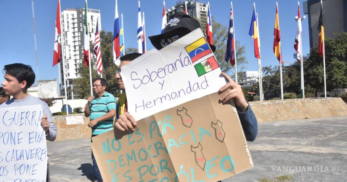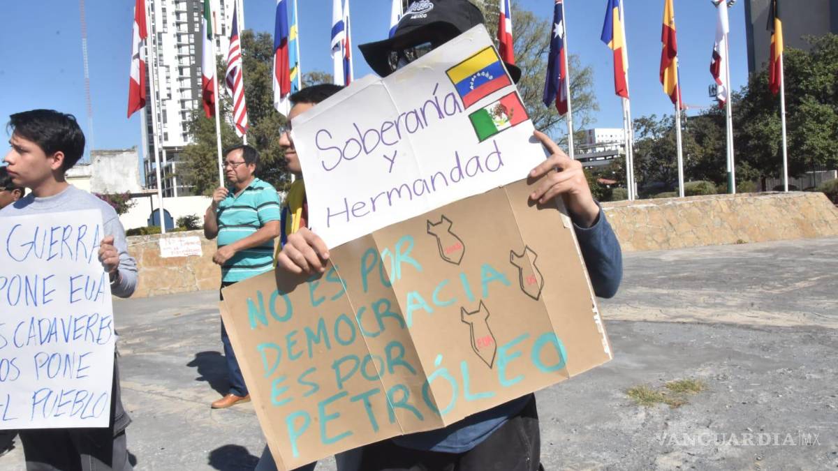 En otro punto de Monterrey, en la llamada Plaza de las Banderas, un grupo de ciudadanos venezolanos se reunió para alzar la voz ante lo que consideraron una invasión de Estados Unidos a su país natal.
