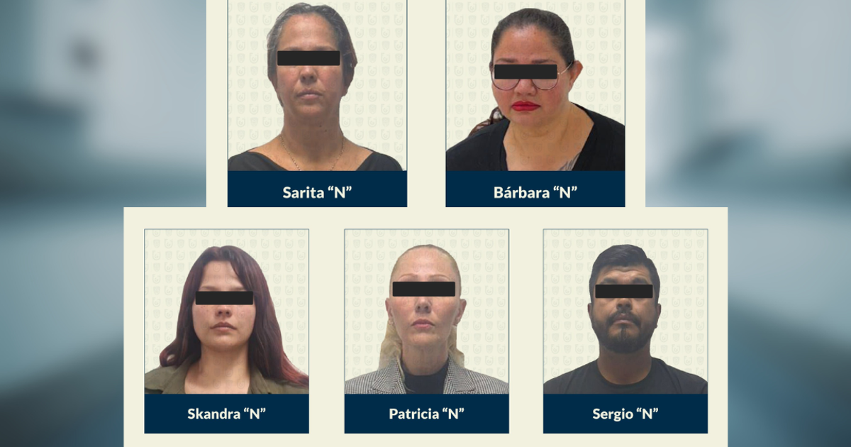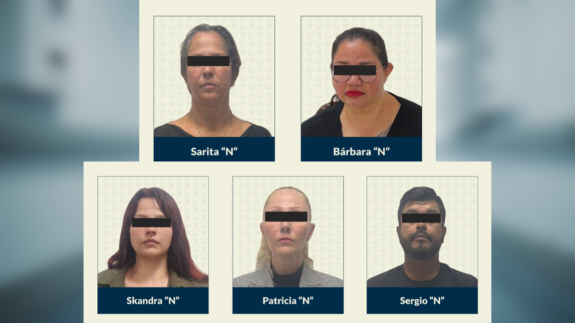 Las personas detenidas fueron identificadas como Sarita “N”, Bárbara “N”, Skandra “N”, Patricia “N” y Sergio “N”. Las cuatro mujeres fueron trasladadas al Centro Femenil de Reinserción Social Santa Martha Acatitla, mientras que el hombre fue internado en el Reclusorio Preventivo Varonil Norte.