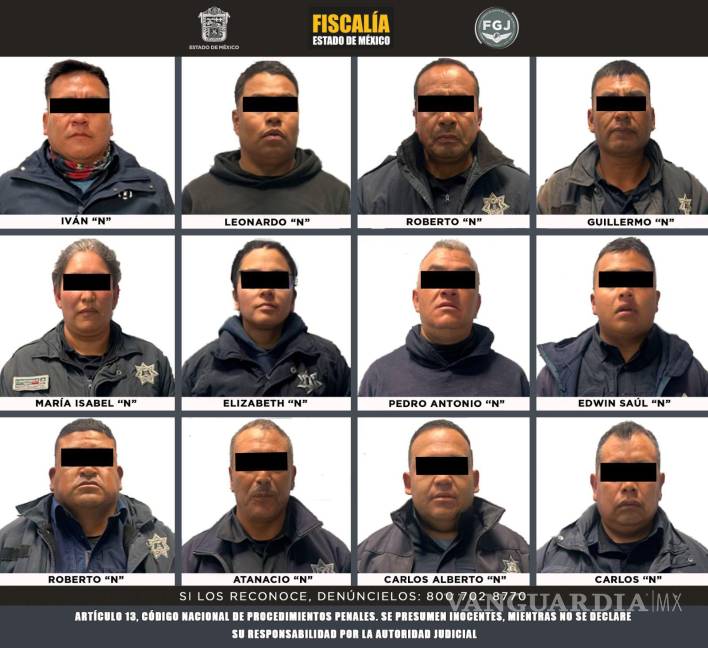 Los policías identificados como Carlos Alberto “N”, Carlos “N”, Pedro Antonio “N”, Edwin Saúl “N”, Rigoberto “N”, Guillermo “N”, Atanasio “N”, Iván “N”, Leonardo “N”, Roberto “N”, Elizabeth “N” y María Isabel “N” fueron detenidos tras los hechos registrados el 22 de noviembre en la comunidad de Rincón del Juando, municipio de Acambay.
