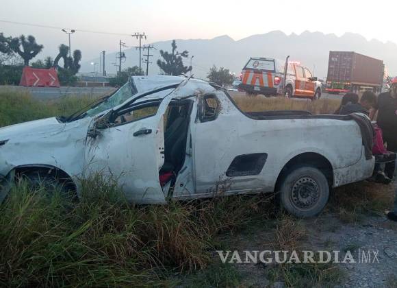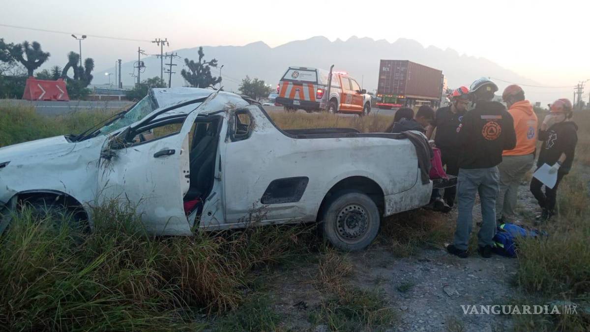 Vuelca camioneta en carretera libre a Saltillo en Nuevo León