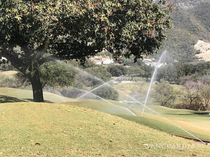 Mientras ciudadanos de Monterrey ‘ordeñan’ agua por escasez, campos de golf son regados con aspersores