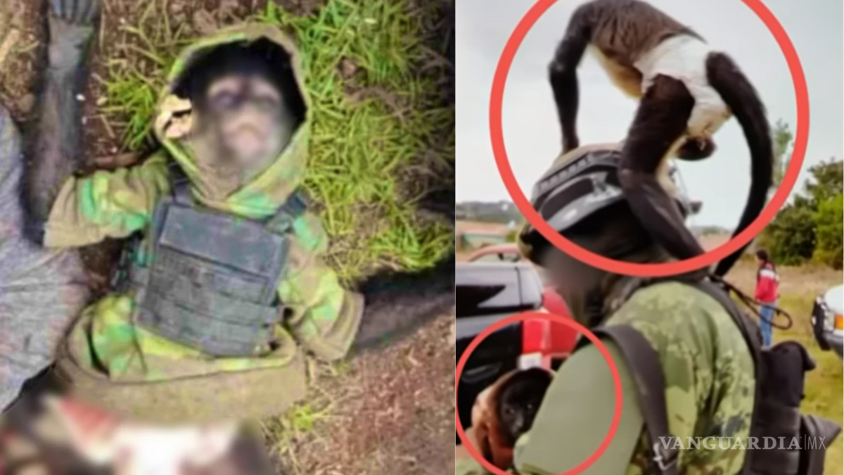 El cadáver del simio contaba con heridas de bala que mancharon de sangre su pequeño chaleco táctico, además, portaba una chamarra tipo militar; su cuerpo fue encontrado a un lado del joven acribillado, aproximadamente de 20 años.