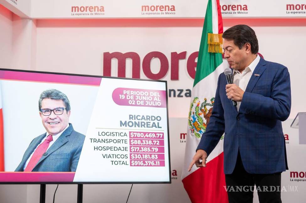 Del 19 de junio al 2 de julio, Ricardo Monreal destinó 780 mil 469 a logística, 88 mil 338 en transporte, 17 mil 385 en hospedaje y 30 mil 181 en viáticos.