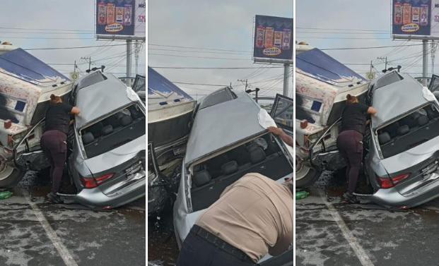 Las autoridades informaron que la víctima, identificada como Melisa Arellano, de 35 años de edad, quedó prensada al interior del vehículo, luego de ser arrastrado varios metros por la pesada unidad, tras el impacto frontal.