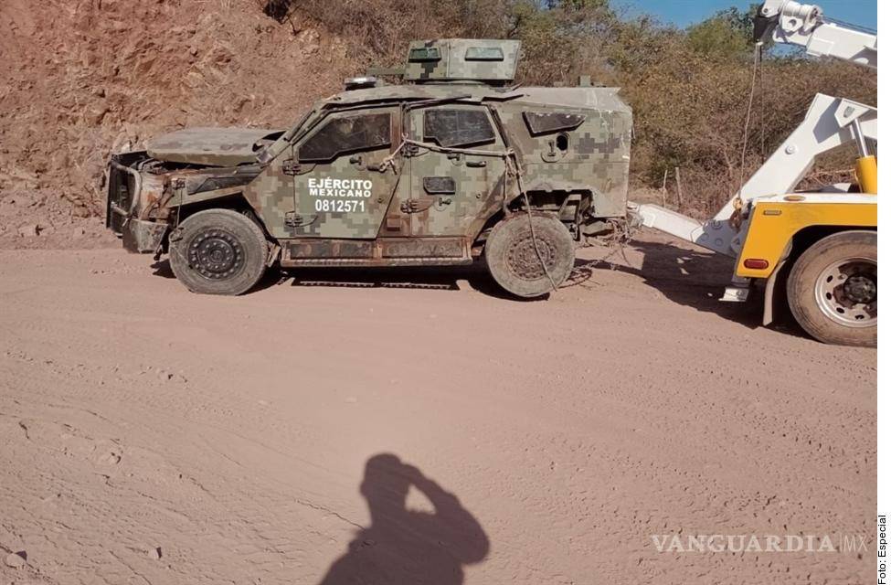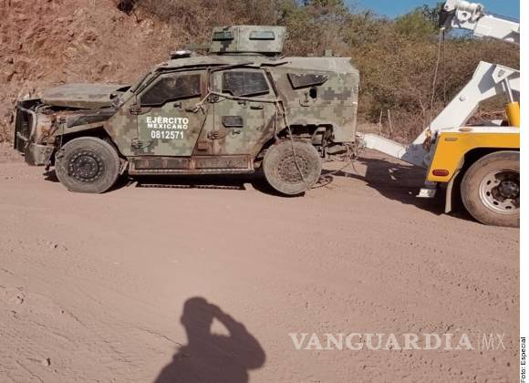 ”Íbamos a un punto que nos mandaron ahí (de apoyo), de unos monstruos (vehículos blindados de manera artesanal por los grupos criminales), ahí iba un capitán del 17 Batallón en el Sandcat, el Sandcat iba de uno (cabeza de convoy) y activó la mina que lo desmadró”, narró un militar sobre la emboscada.
