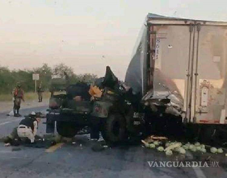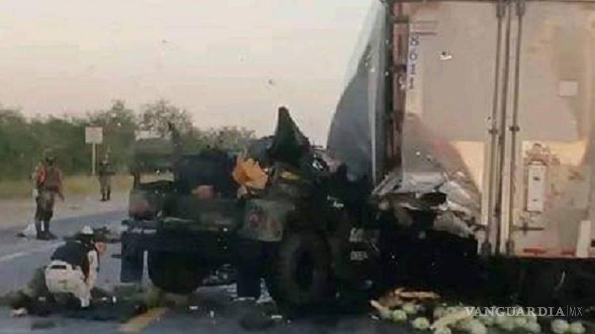 Ciudad Victoria, Tamps. Siete elementos de la Secretaria de la Defensa Nacional (Sedena), entre ellos un oficial y seis elementos de tropa, fallecieron y uno más resultó lesionado tras el choque entre un vehículo militar y un tráiler, informó la Fiscalía de Tamaulipas.