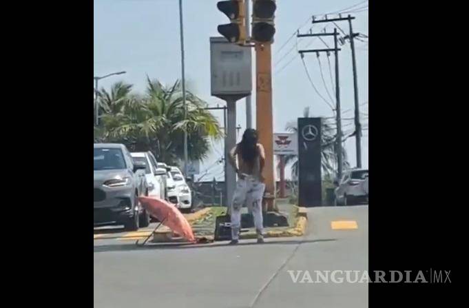 En redes sociales se ha hecho viral un extraño video en el que se observa que una mujer, sin aparente razón, decide cambiarse a plena luz del día y en medio de una avenida en Boca del Río, Veracruz.