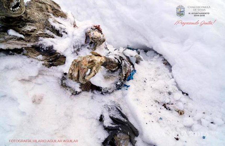 De acuerdo con sus datos, los restos fueron ubicados a 5 mil 270 metros, en la cara noreste del Citlaltépetl y, por el avanzado estado de descomposición, consideraron que tienen "muchísimo tiempo" enterrados en el hielo.