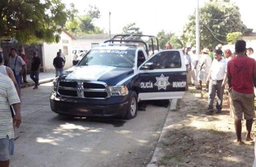 Sobre la carretera federal, quedó la unidad de la Policía Municipal de Cuajinicuilapa, ahí murió quedó el cuerpo de Honorio Martínez y dos policías que lo acompañaban.
