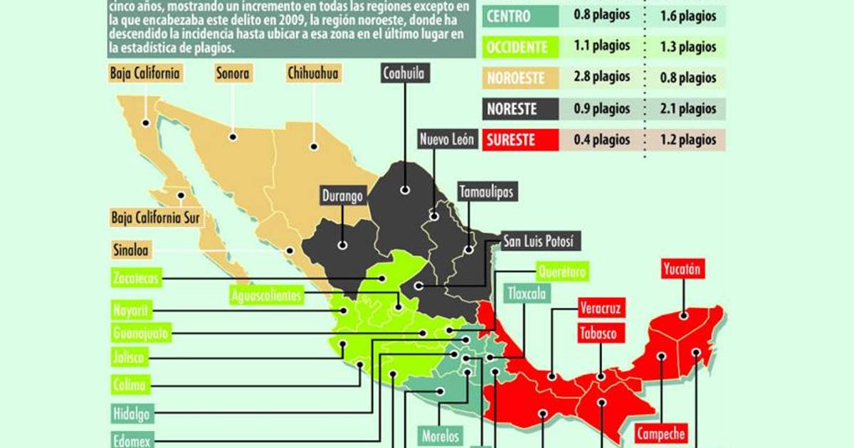 La región noroeste pasó del primer al último lugar en el índice de plagios, mientras que en el noreste ocurrió el efecto contrario, pasando de ser la zona más segura a la de mayores incidencias