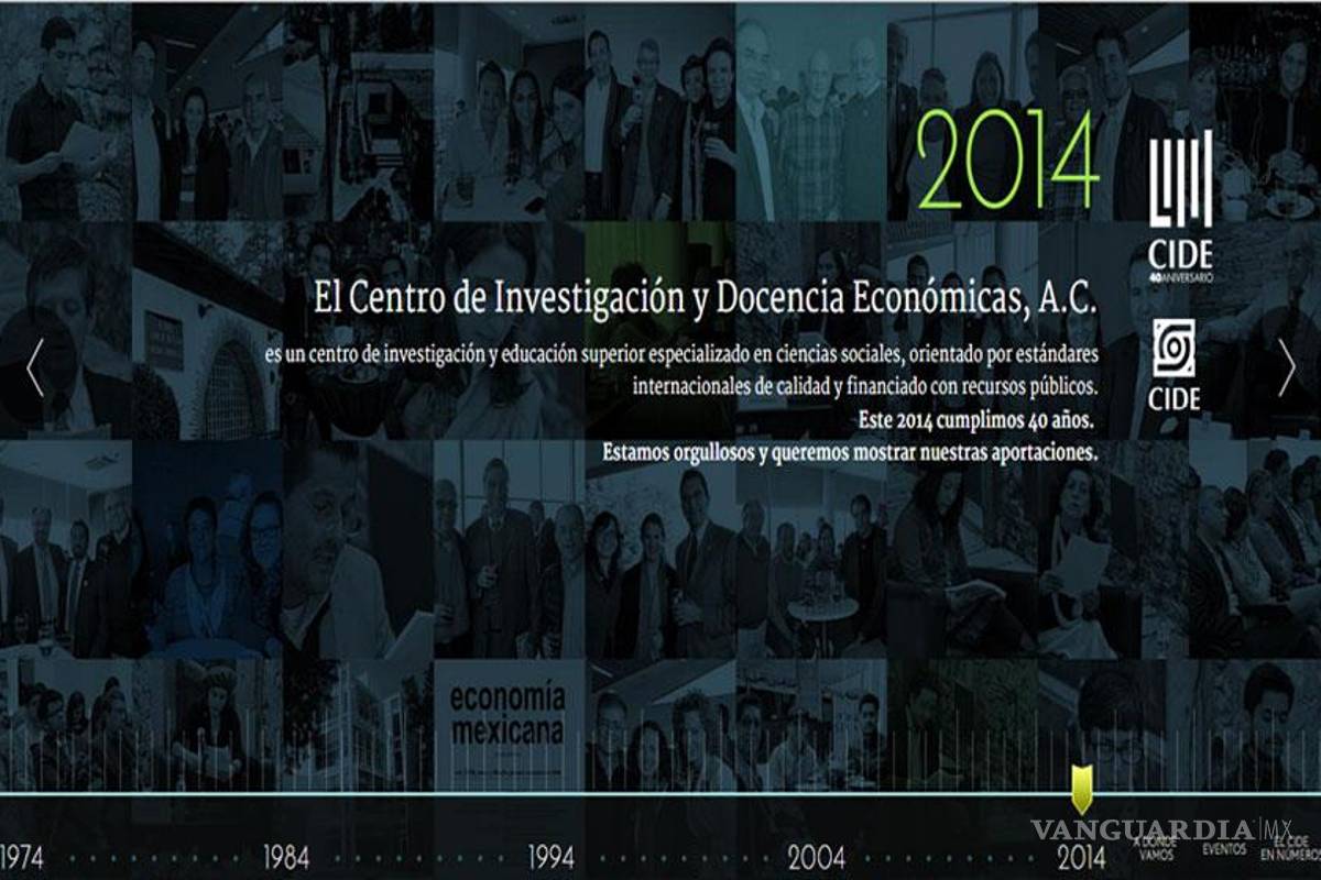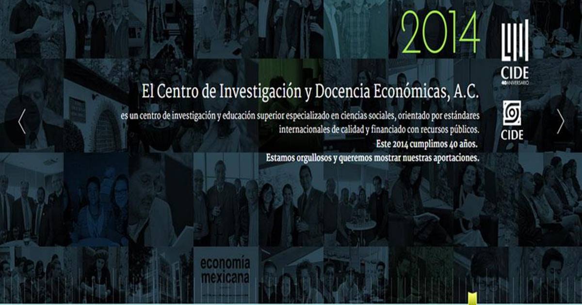 El micrositio #CIDE40 lleva al usuario cronológicamente desde 1974 a 2014, incluye producción académica, datos relevantes, imágenes y vídeos testimoniales de siete directores del CIDE, así como las actividades que se han organizado por esta conmemoración.