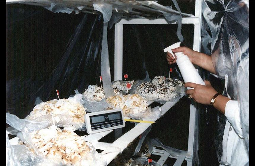 Por otro lado, tenemos que reproducir al hongo y obtener lo que comercialmente llamamos semillas, que es el crecimiento de las esporas del hongo sobre alguna semilla de trigo o sorgo. El producto obtenido se esparce sobre el sustrato (contenido en bolsa de plástico) y se mantiene de dos a tres semanas en la oscuridad con humedad y temperatura controladas, para luego exponerlos a una fase luminosa, describe.