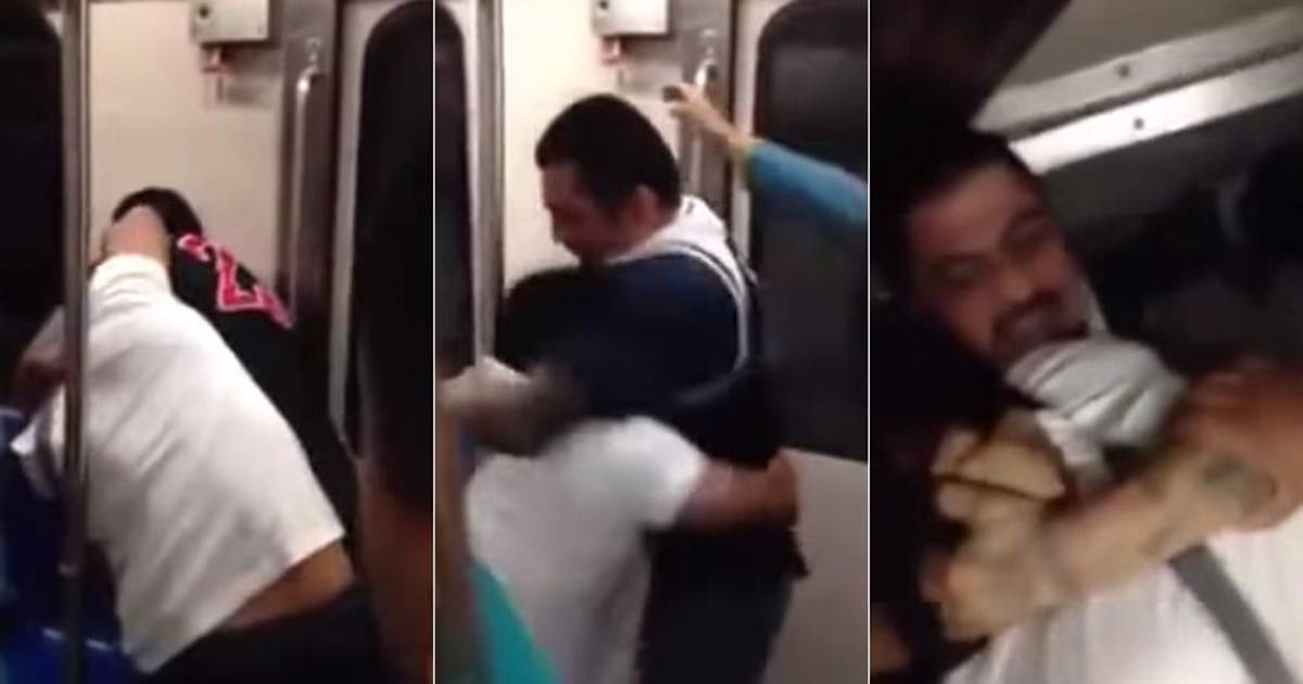 Un video que circula en redes sociales muestra a dos hombres enfrascados en una pelea callejera a bordo de uno de los vagones de la Línea 2 del Metro en Monterrey