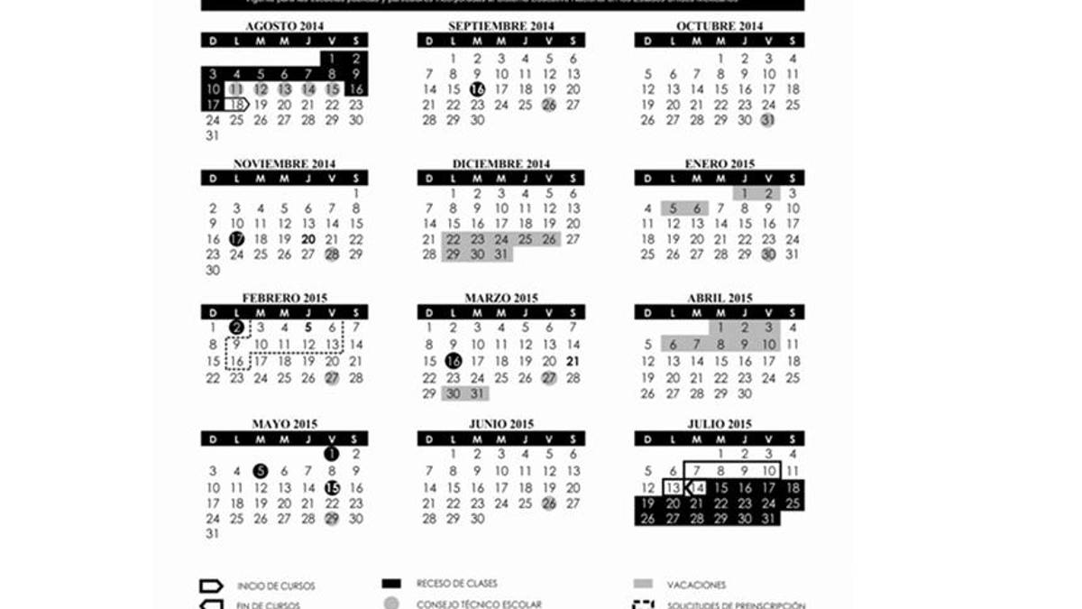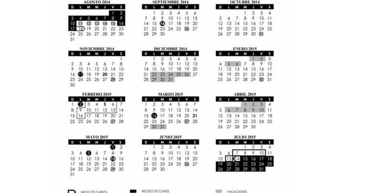 El inicio de curso será el lunes 18 de agosto, para concluir el 14 de julio de 2015, durante el ciclo escolar habrá siete días de suspensión de clases