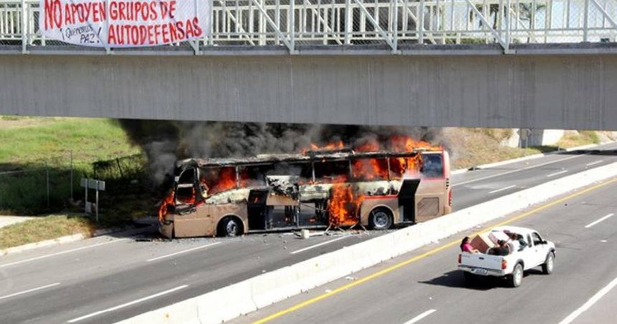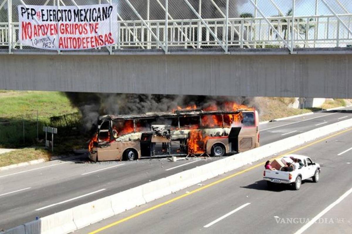 Sujetos armados incendiaron ayer autobuses en la carretera Cuatro Caminos-Apatzingán