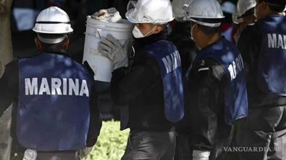 -(La vi) cuando la empiezan a sacar del sótano. Yo ingresé sólo hasta el área en que creo se encontraba la recepción del edificio (B-2 de Pemex), donde había unos 20 o 30 cadáveres desmembrados. Ahí me quedé todo el tiempo, porque yo no traía equipo de seguridad para poder trabajar con ellos (en el sótano). Ellos traían guantes de carnaza, porque había vidrios rotos por todos lados; contaban con palas, picos, barretas, en fin, traían bastante equipo para poder hacer algo. Entonces la vi (la maleta), cuando el equipo antibombas sale por un espacio que tenían a un lado de lo que fue la recepción; no sé si fuera pasillo, no sé si fueran escaleras, no sé si era un elevador, pero sé que era un hueco por donde se podía acceder del sótano a la superficie.