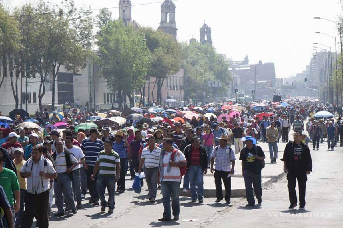 Bajo un sol radiante y temperaturas cercanas a los 30 grados, los profesores caminaron por la calzada Rosales, para luego introducirse al Centro Histórico de la ciudad, donde lanzaron consignas en contra de la reforma.