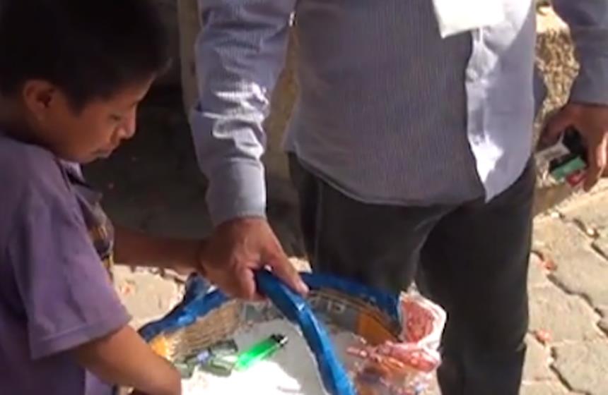 Ante la complacencia de su compañera Carmen Torres Díaz, el empleado obligó al niño a tirar al suelo la mercancía, mientras el pequeño irrumpía en llanto y luego se agachaba con las manos sobre su cabeza para lamentarse.