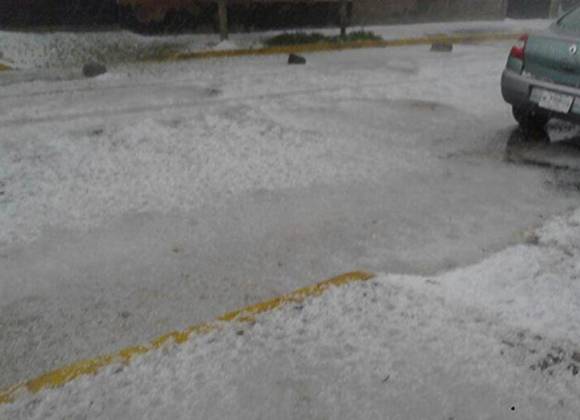 Nezahualcóyotl. Una fuerte granizada cayó en el primer cuadro del municipio de Nezahualcóyotl, dejando una capa de hasta 10 centímetros de hielo reportó el jefe de Protección Civil, Jorge Herrera Velázquez. Se registraron encharcamientos en avenidas.