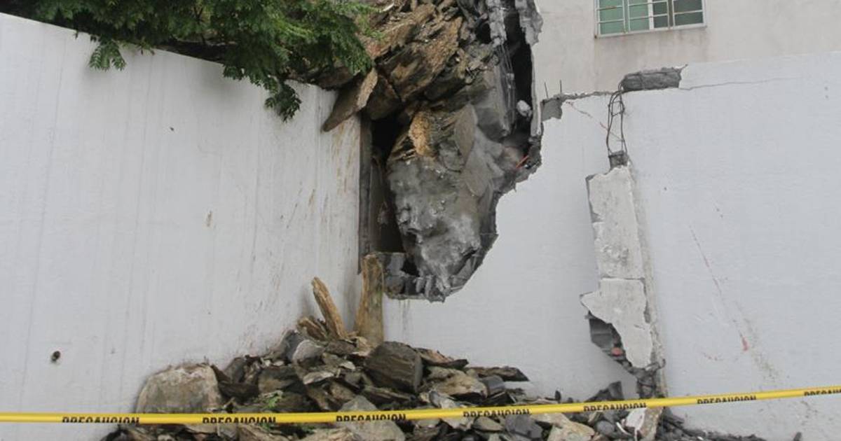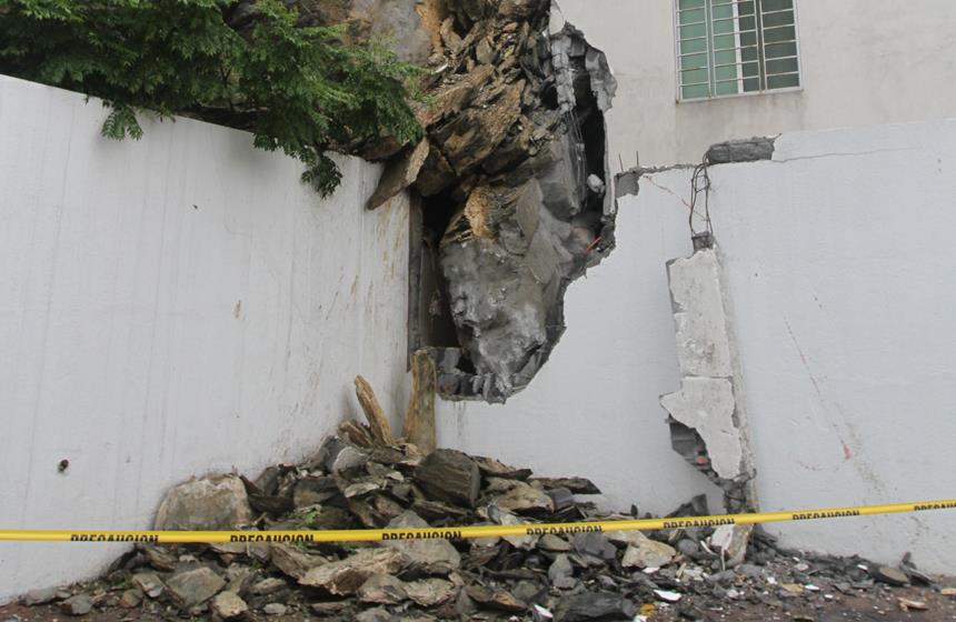 Daña roca edificio por deslave en Monterrey