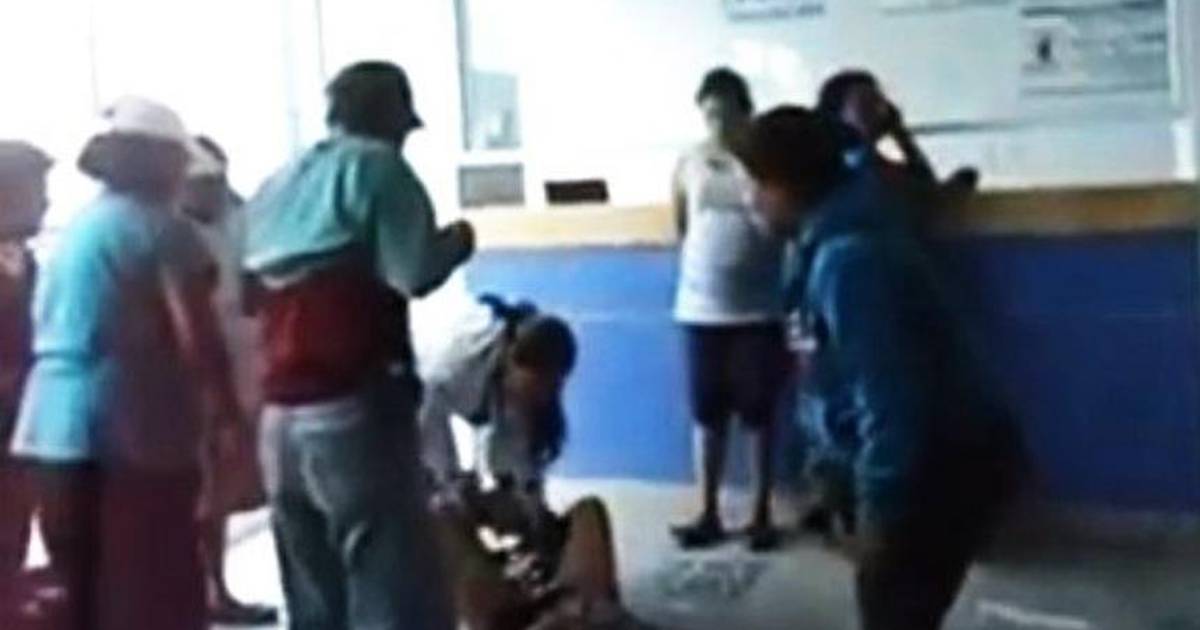 Después del nacimiento, un grupo de trabajadores del hospital pone a la mujer en una camilla para trasladarla a l interior de la institución, en medio de gritos de la comunidad que reclama la falta de atención.