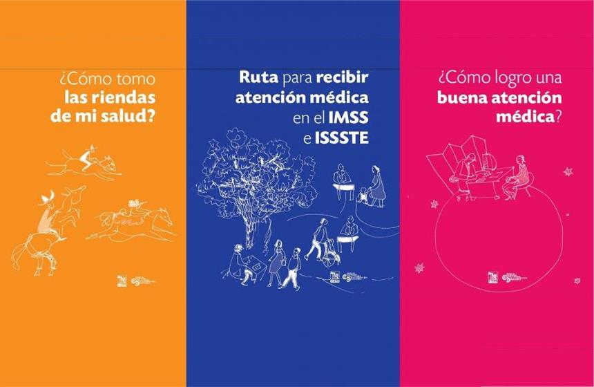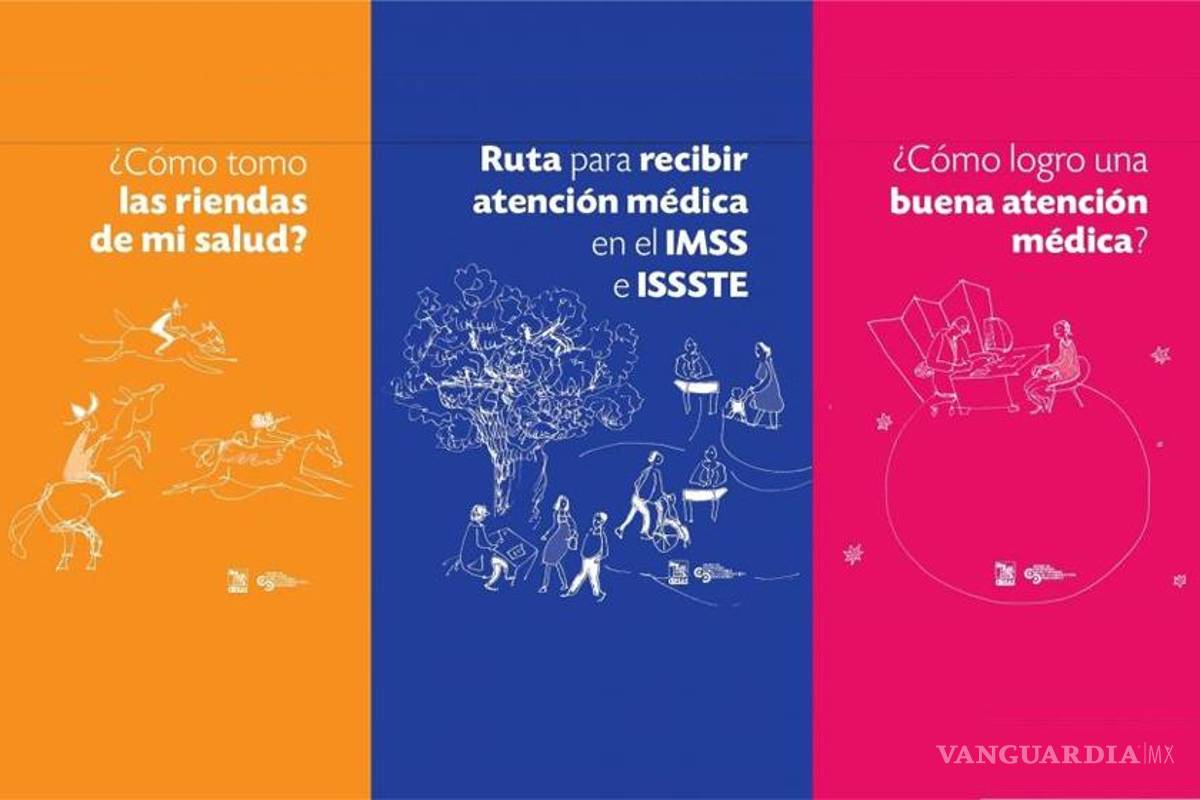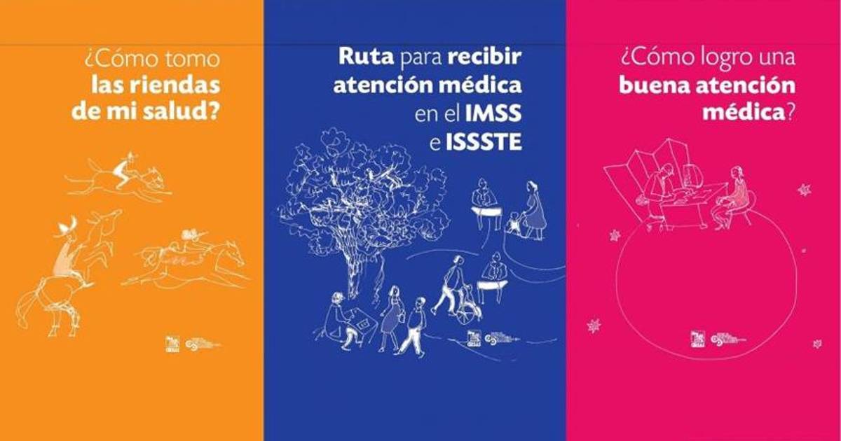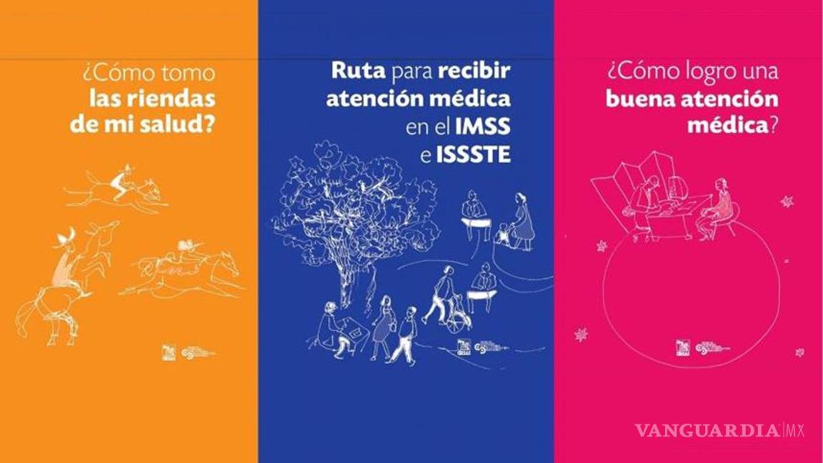 Los títulos de la guía, dirigida a los usuarios del Instituto Mexicano del Seguro Social (IMSS) y del Instituto de Seguridad y Servicios Sociales de los Trabajadores del Estado (ISSSTE), son ¿Cómo tomo las riendas de mi salud?, ¿Cómo logro una buena atención médica? y Ruta para recibir atención médica en el IMSS e ISSSTE.