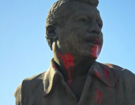 Hermosillo.- El rostro de Luis Donaldo Colosio una vez más se tiñó de rojo, pero esta vez se trató del busto que fue rociado con pintura roja.