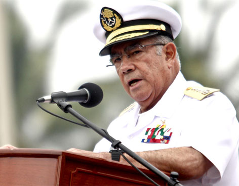 En el acto donde también se realizó la Jura de Bandera de los cadetes de la Escuela Naval Militar, el almirante recordó que "la historia nos ha enseñado que a mayor peligro o desafío, mayor unión y respuesta solidaria".