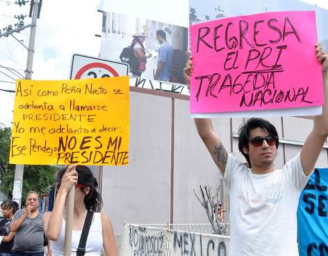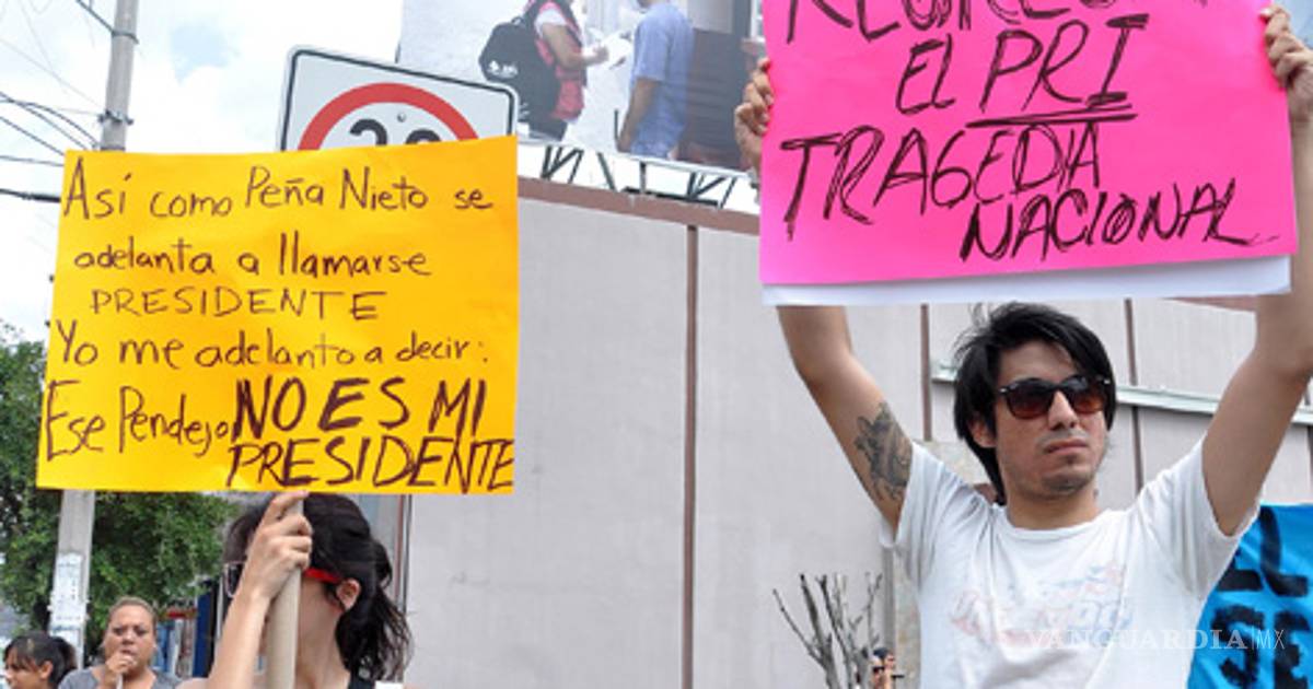 También gritaban consignas como: "Si hay Imposición No hay Revolución" además de que algunos llevaban máscaras con la imagen de Enrique Peña Nieto.