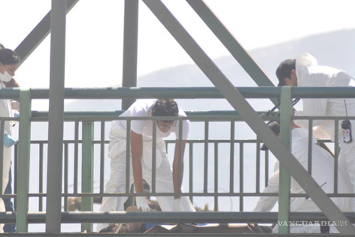 Un gran caos vehicular y la presencia de decenas de elementos policiacos se ha generado en la colonia Hogares Ferrocariles, en donde a la altura del puente peatonal de Fidel Velázquez fueron colgados los cuerpos de dos personas.