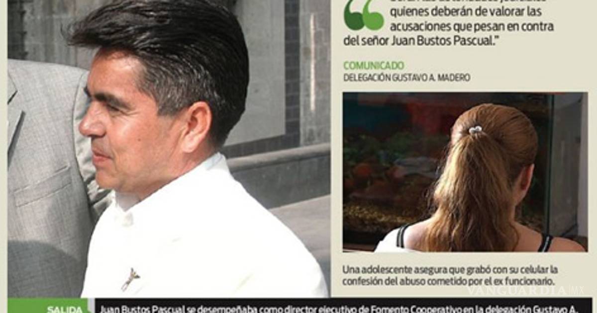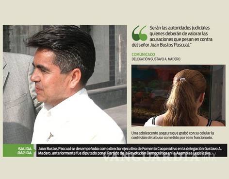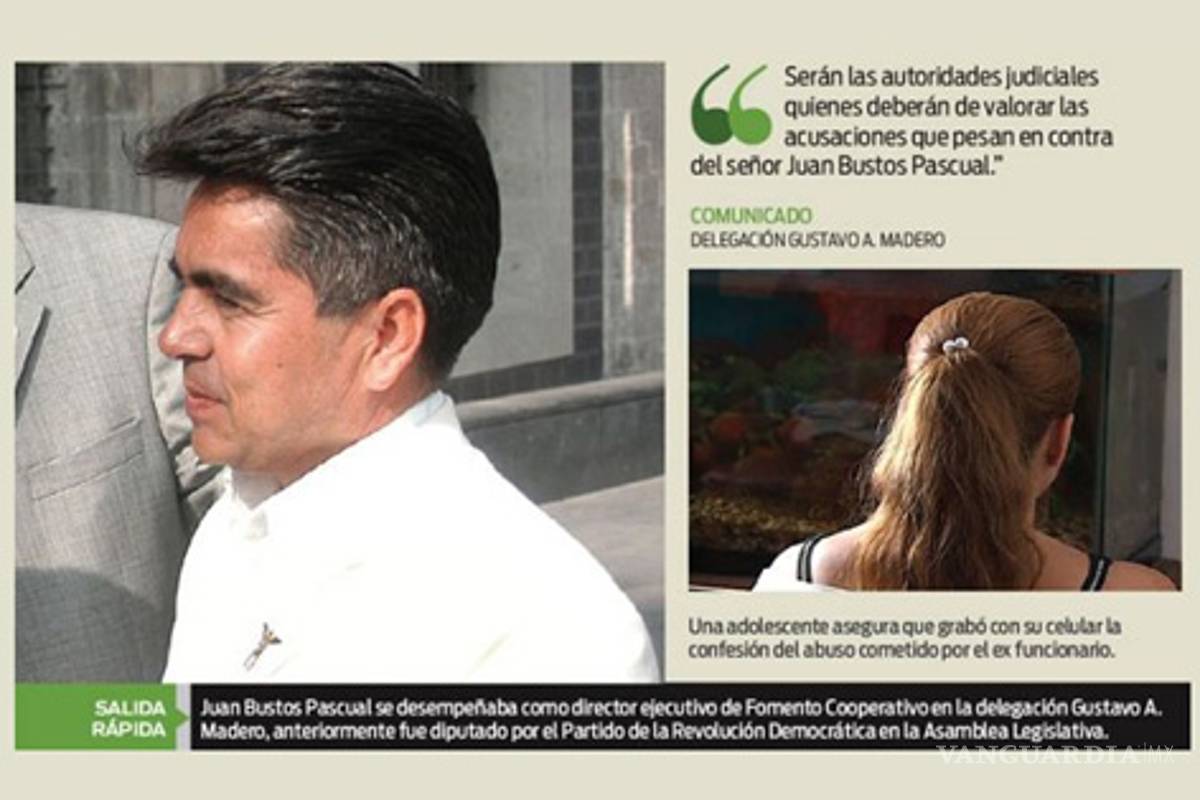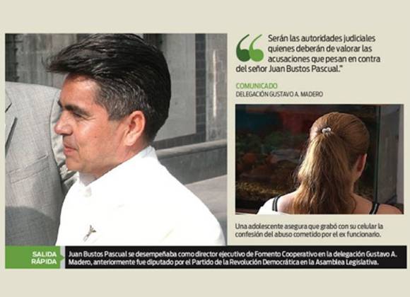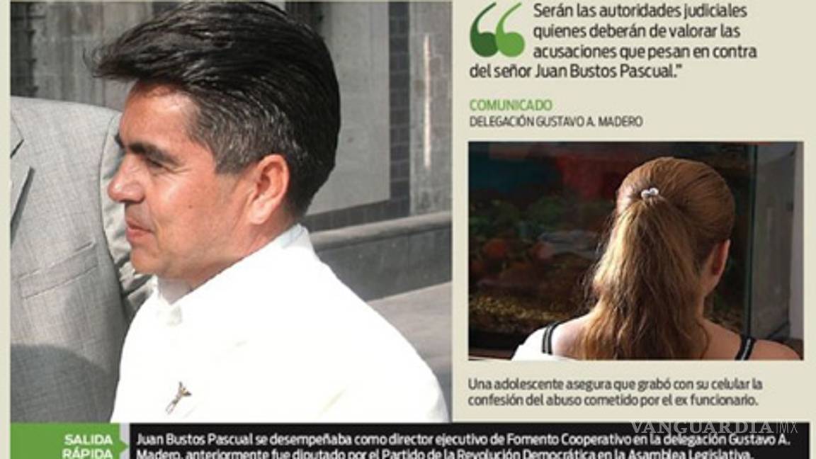 CIUDAD DE MÉXICO.- Juan Bustos Pascual presentó su renuncia al cargo de director ejecutivo de Fomento Cooperativo en la delegación Gustavo A. Madero, para atender la denuncia en su contra como presunto responsable de abuso sexual de una menor de 12 años.