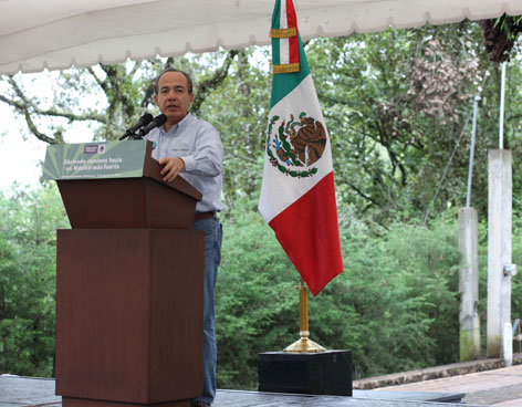 Después Calderón se refirió a los logros en materia de salud y social, y en materia de seguridad pública, felicitó a las fuerzas federales que, a riesgo de su vida, trabajan todos los días aquí por la seguridad pública.
