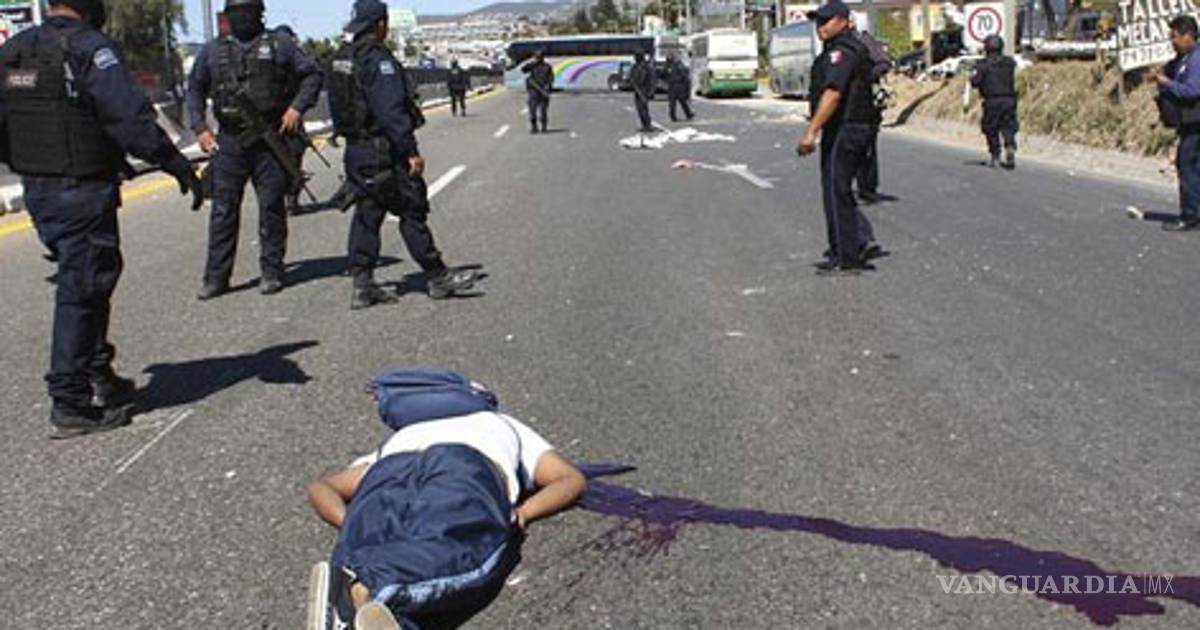 Enseguida, la acción policíaca se salió de control y mientras los jóvenes lanzaron cohetes contra los federales, estos dispararon contra el contingente, asesinando a dos normalistas.