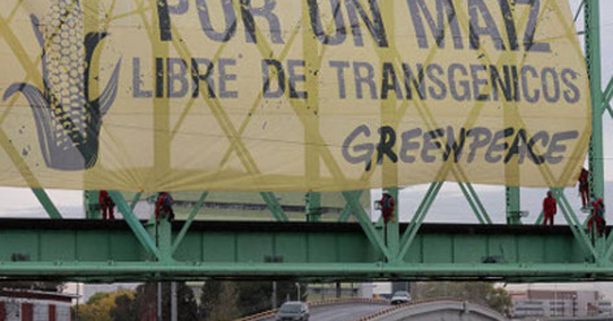 Chihuahua.- Miembros de la organización ambientalistas Greenpeace escalaron "El puente verde" ubicado en una las avenidas más importantes de la ciudad de chihuahua, para colocar una manta de 234 metros cuadrados con el objetivo de demandar al poder legislativo del estado el mantener el maíz de la entidad, tanto nativo como convencional, libre de transgénicos y urgió a los legisladores a solicitar una moratoria a la siembra de maíz genéticamente modificado.