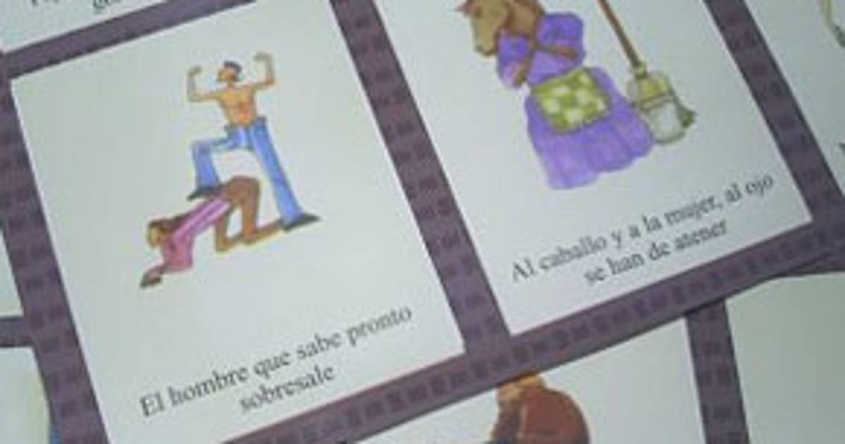 "A cualquier hora el perro mea y la mujer llora", "mujeres juntas, sólo difuntas", "si no me pega no me quiere" , "el hombre en la cocina huele a caca de gallina", "quien bien te quiere te hará llorar", "vino y mujeres dan más pesares que placeres", "no hay fea sin gracia, ni bonita sin tacha", describen las planillas y cartas del juego.