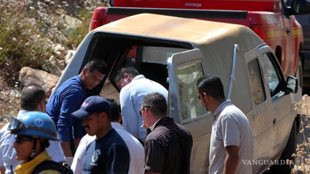 También se encontró más adelante una camioneta de la marca Toyota, línea Tacoma, color gris, la cual quedó abandonada con las puertas abiertas, donde supuestamente quedaron tiradas, a un costado, varias personas sin vida.